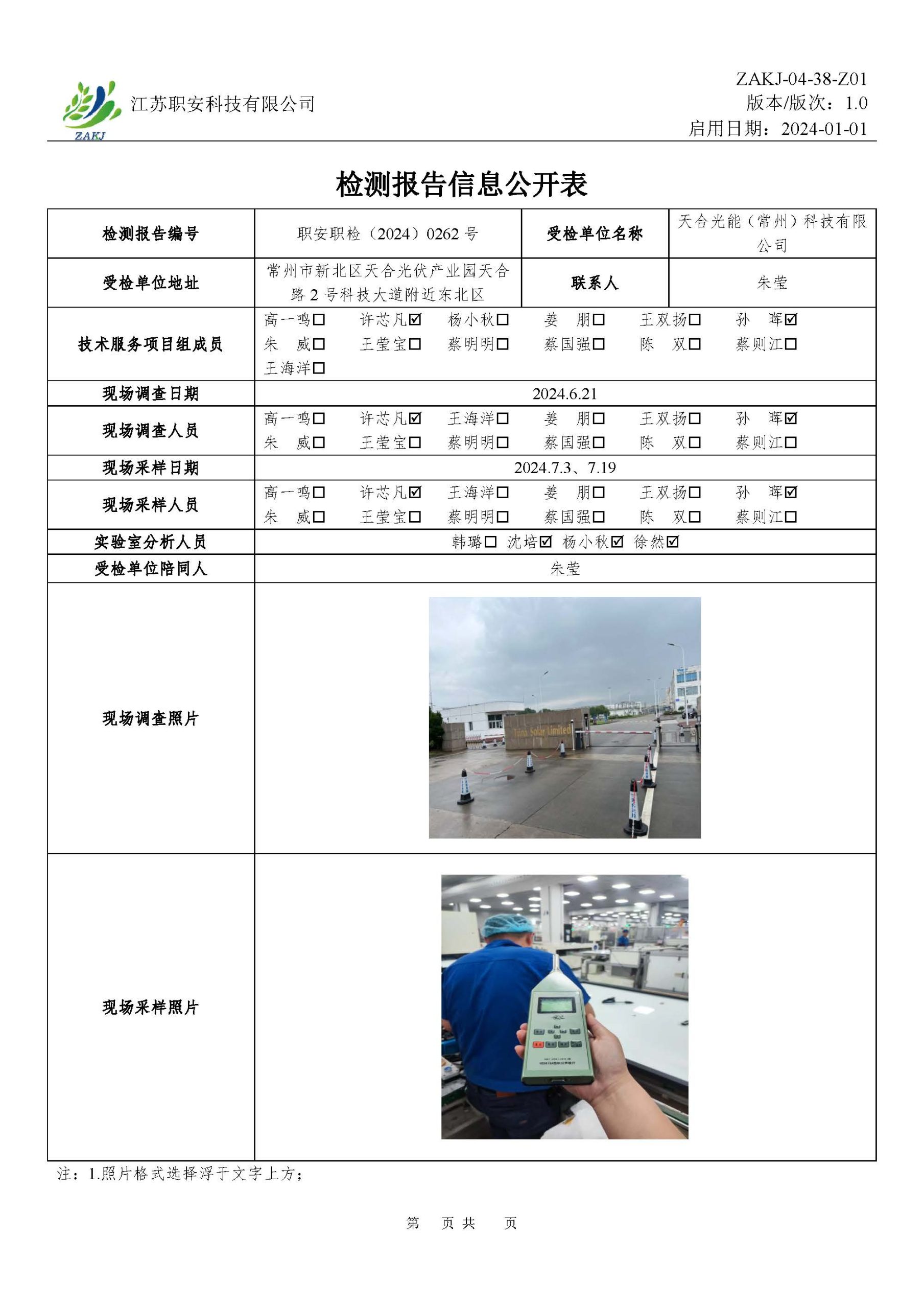 檢測報告公示