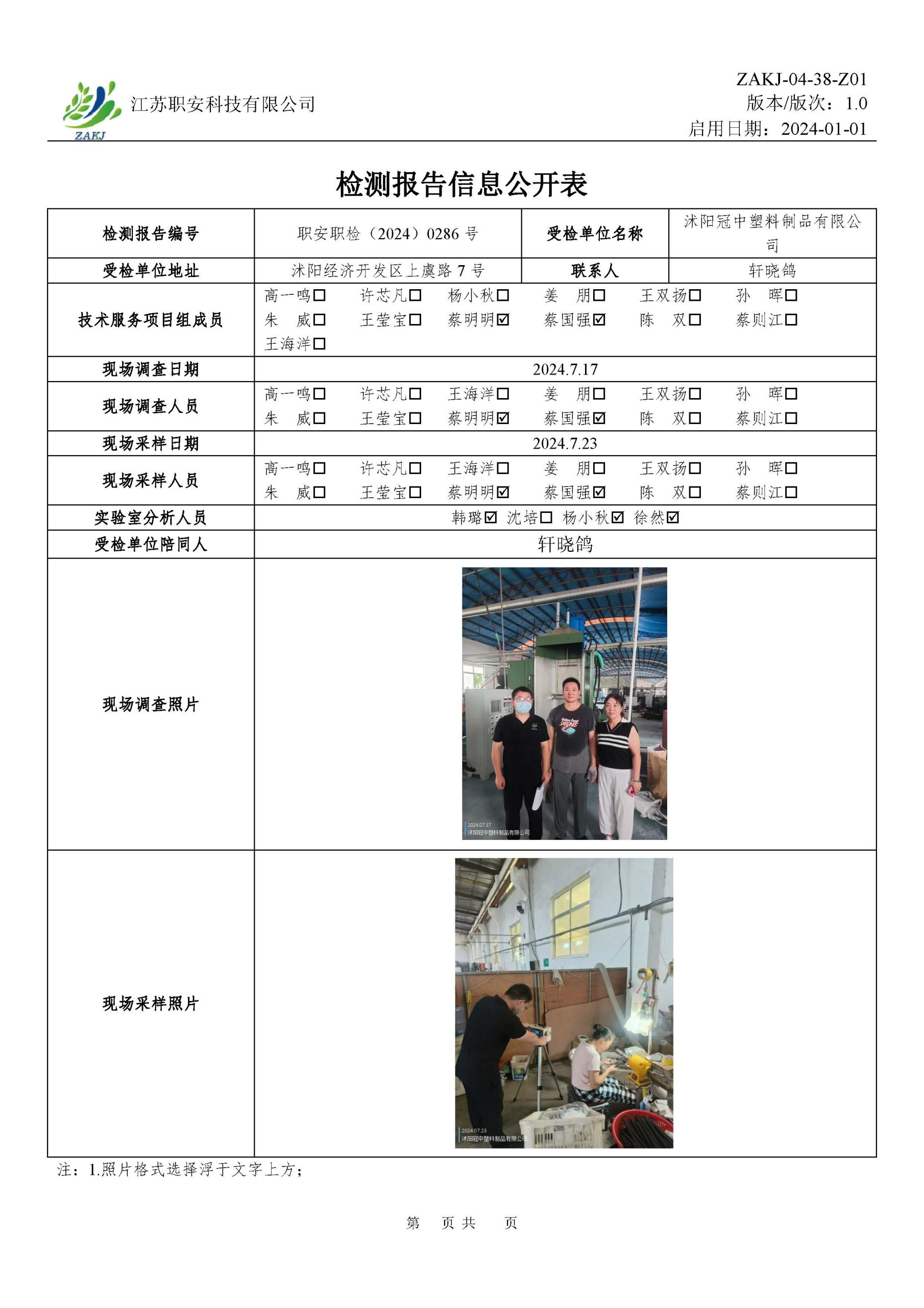檢測報告公示