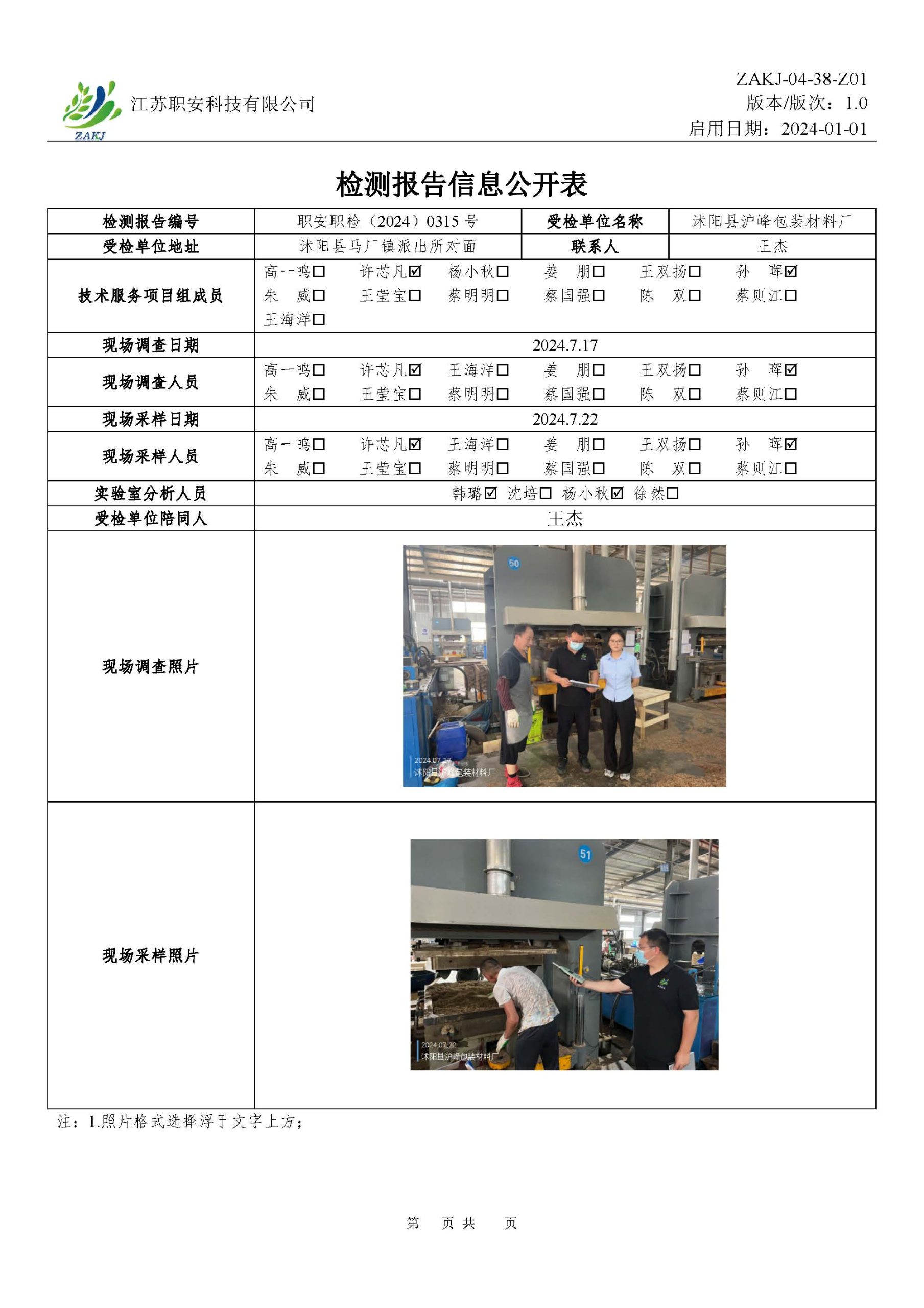 檢測報告公示