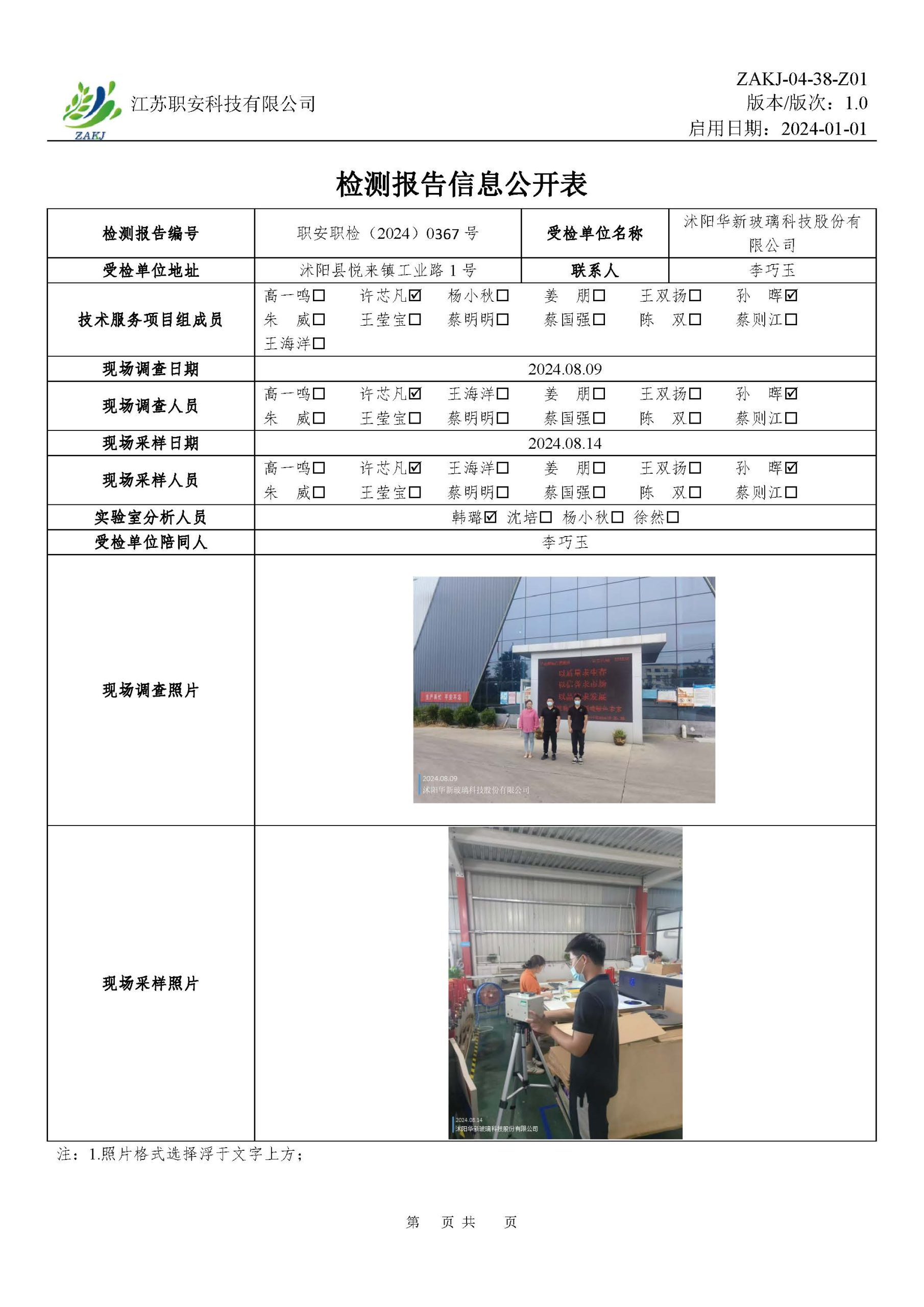 檢測報告公示