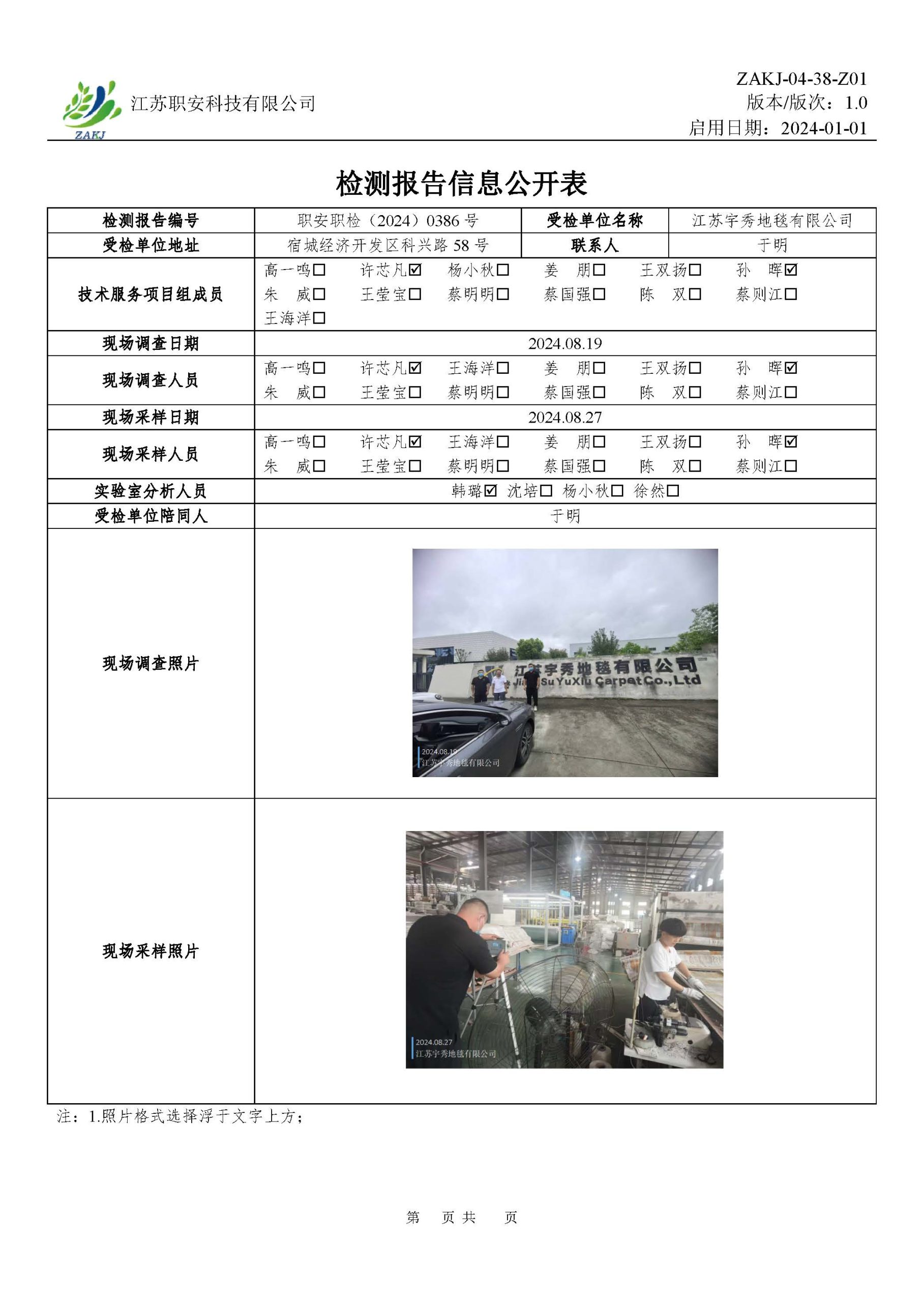 檢測報告公示