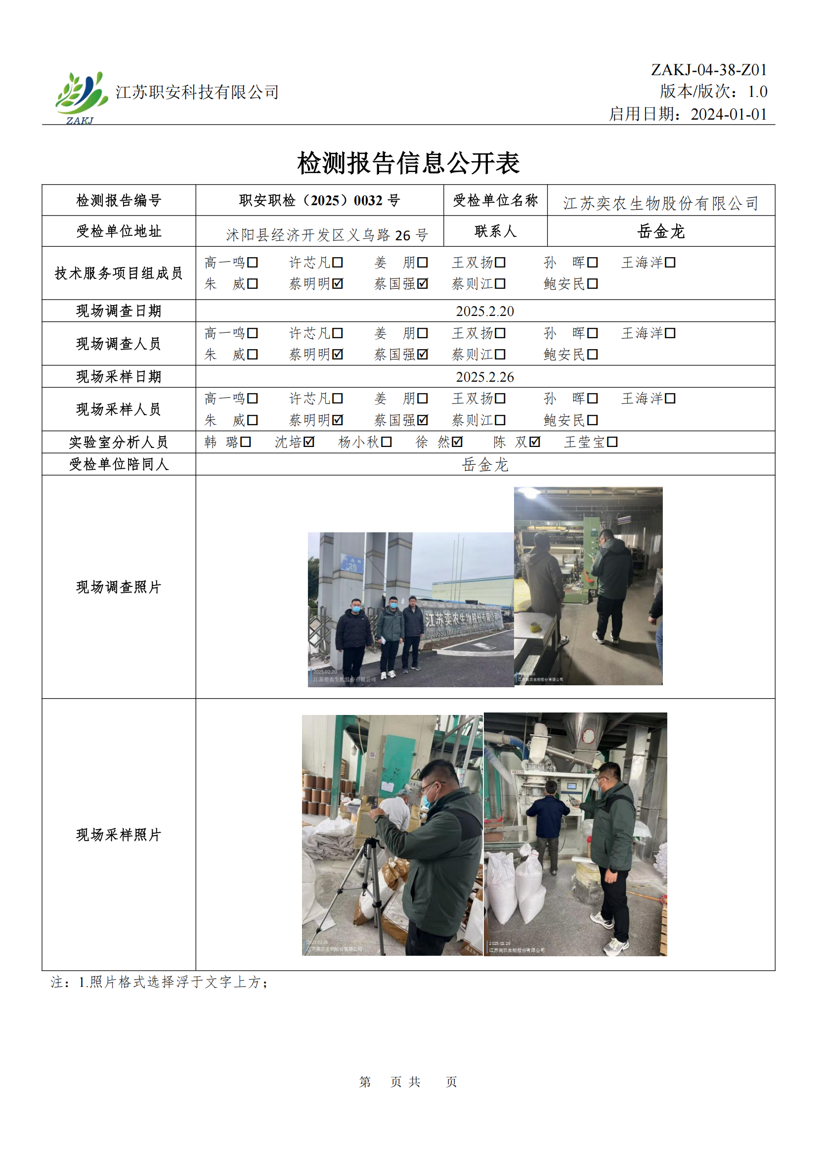 檢測報告公示