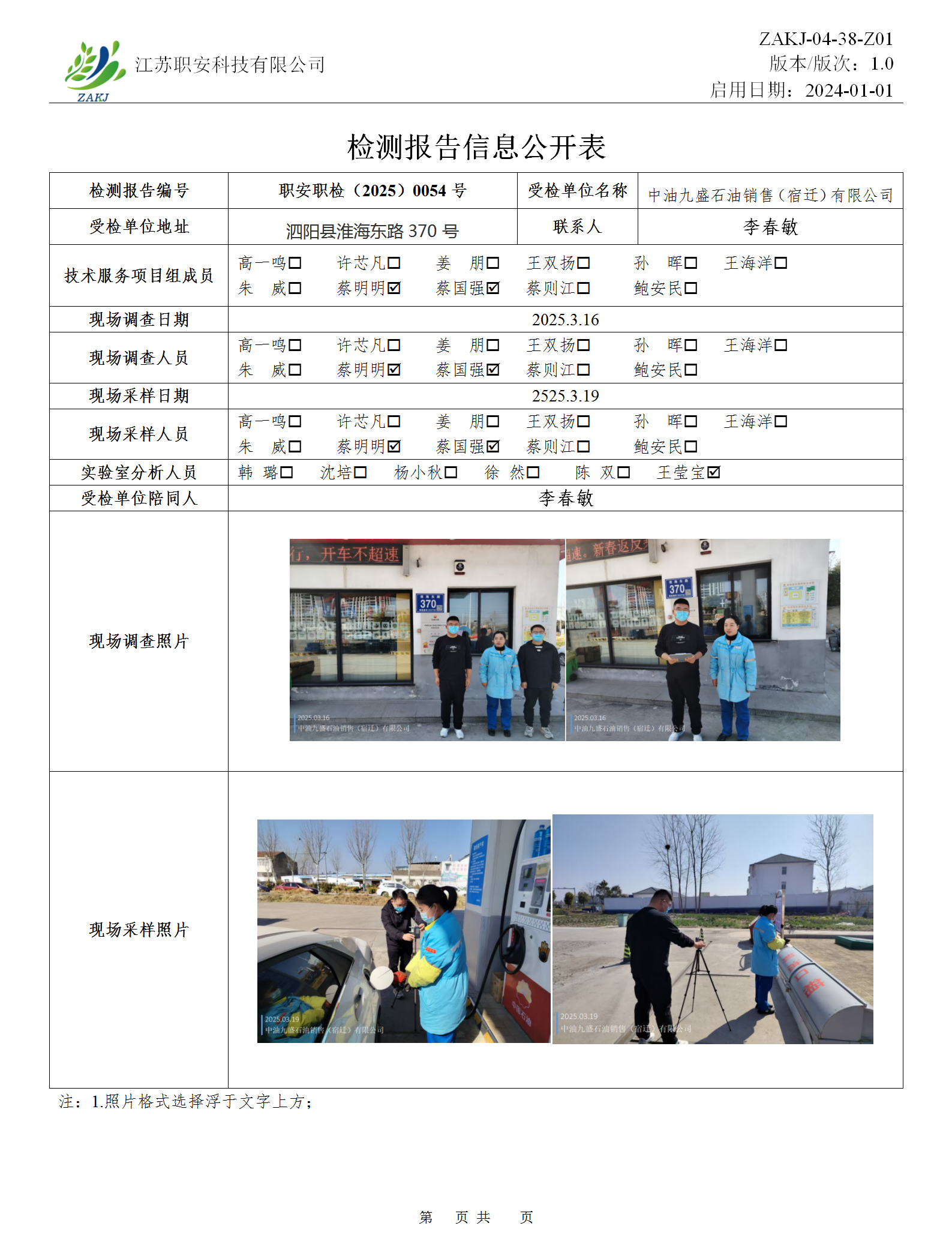 檢測報告公示