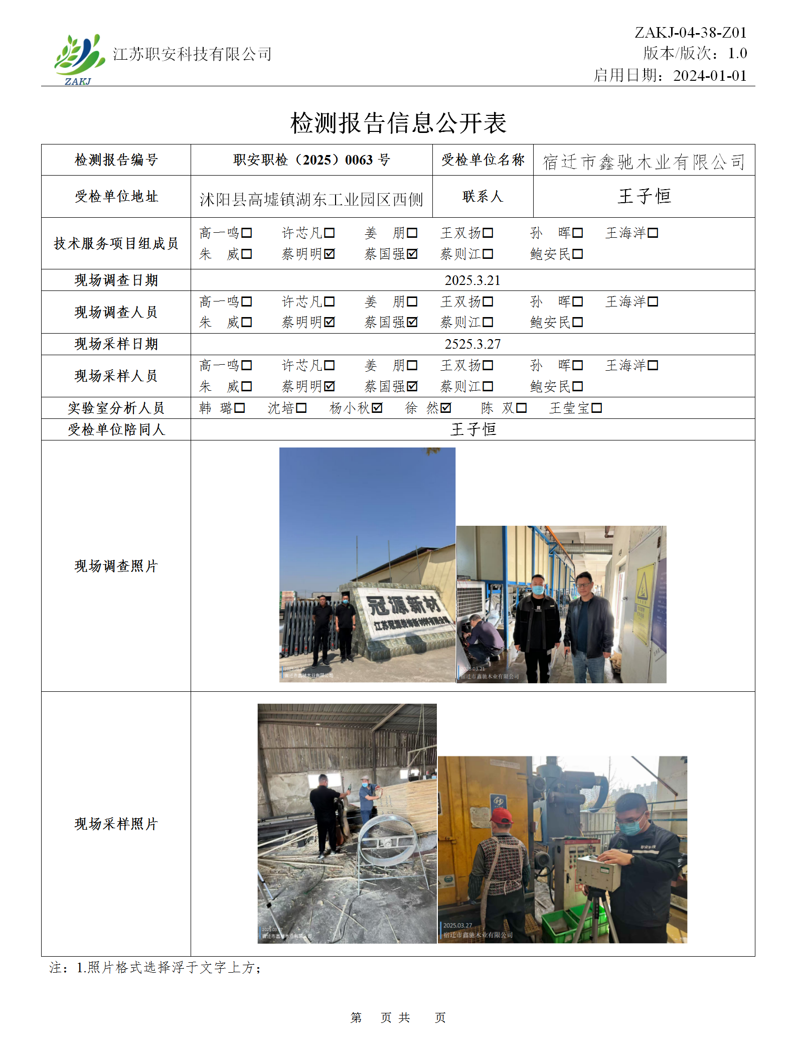 檢測報告公示