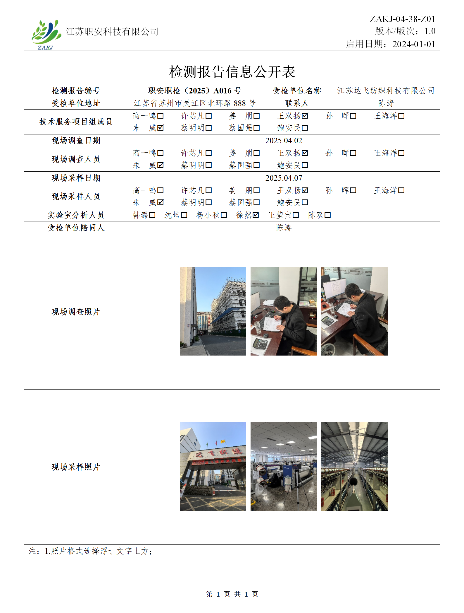 檢測報告公示