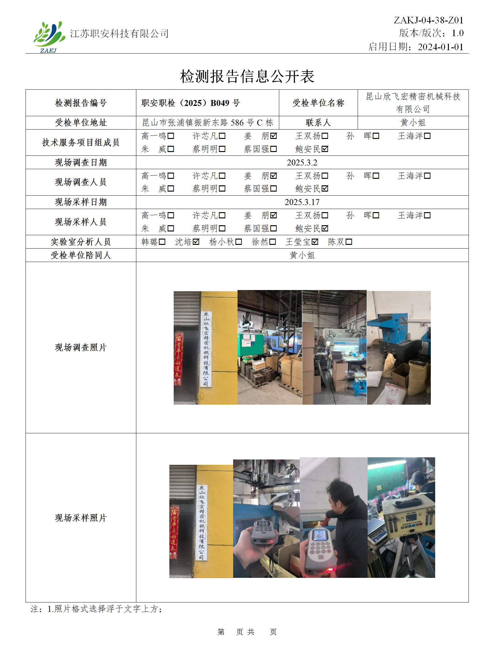 檢測報告公示