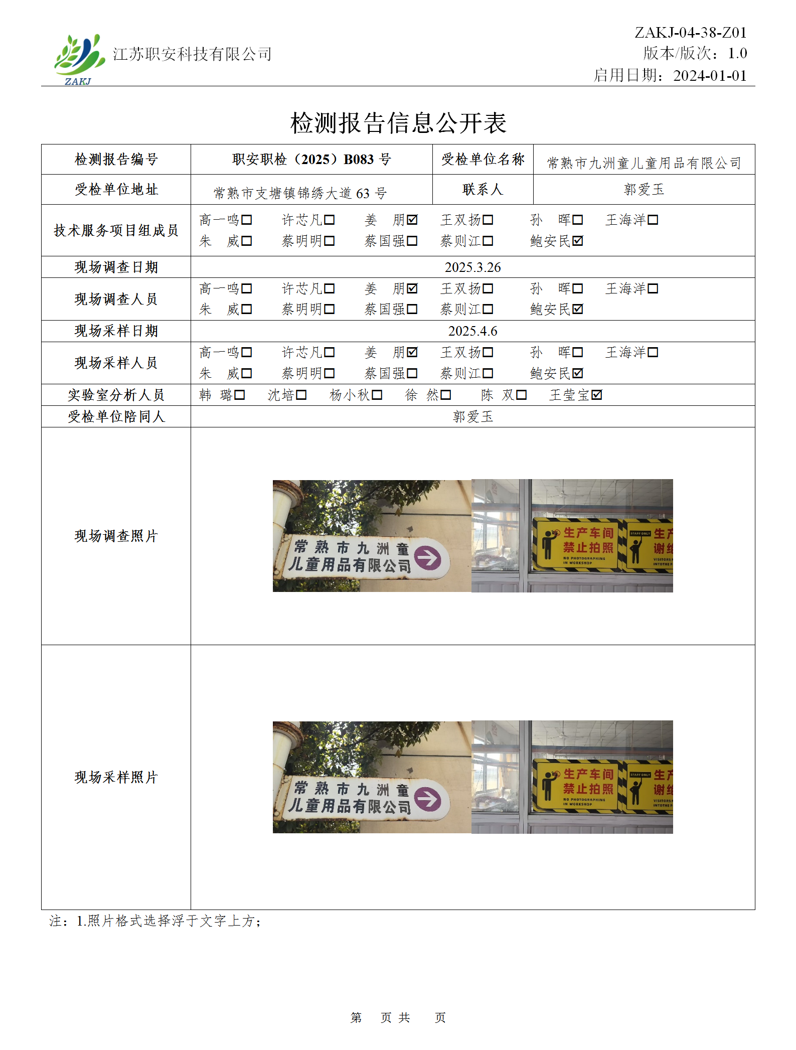 檢測報告公示