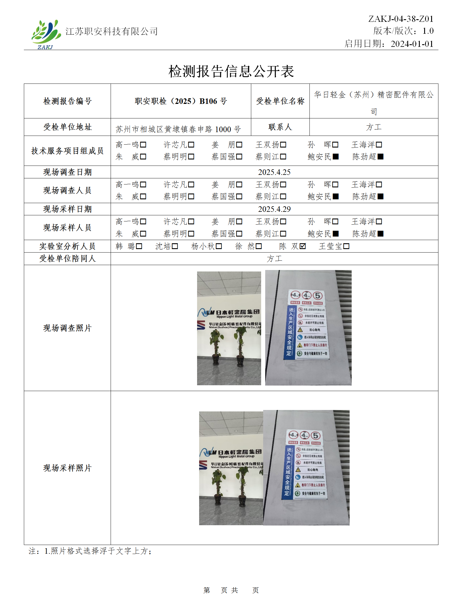 檢測報告公示