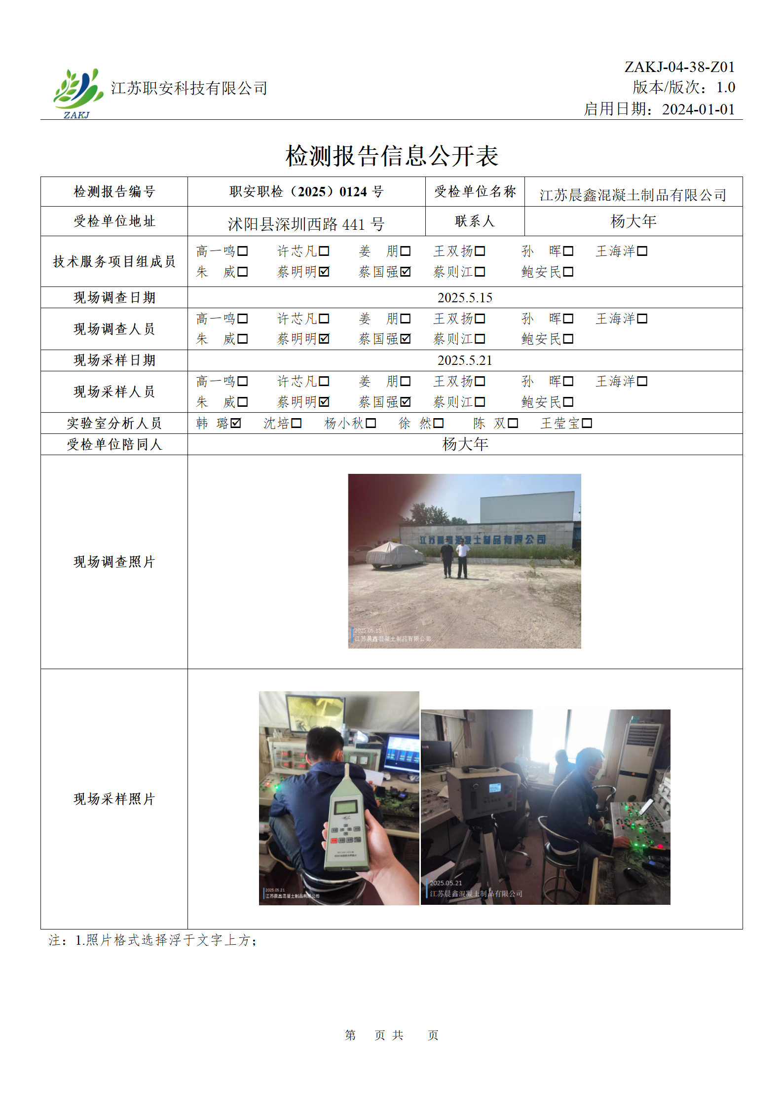 檢測報告公示