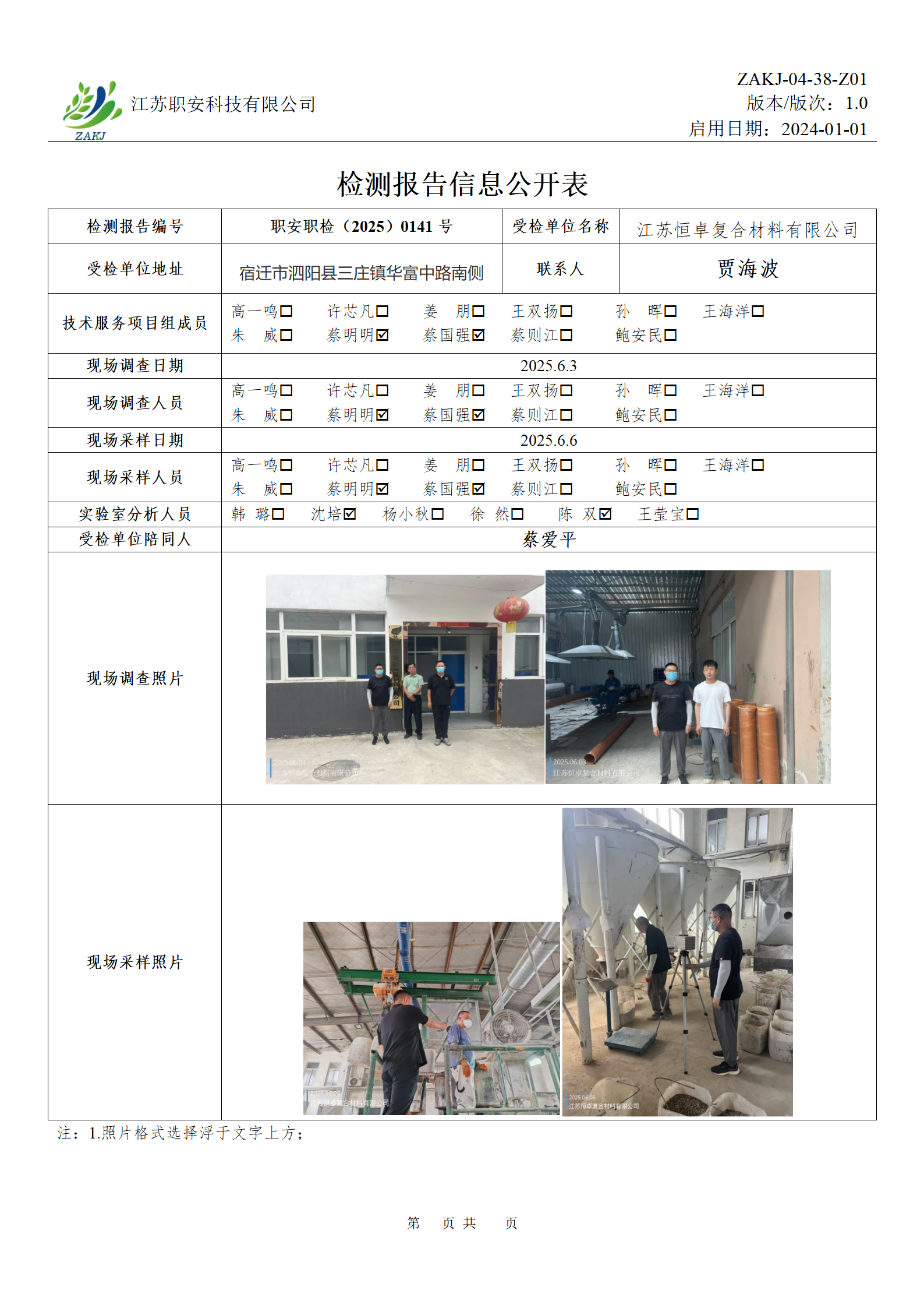 檢測報告公示