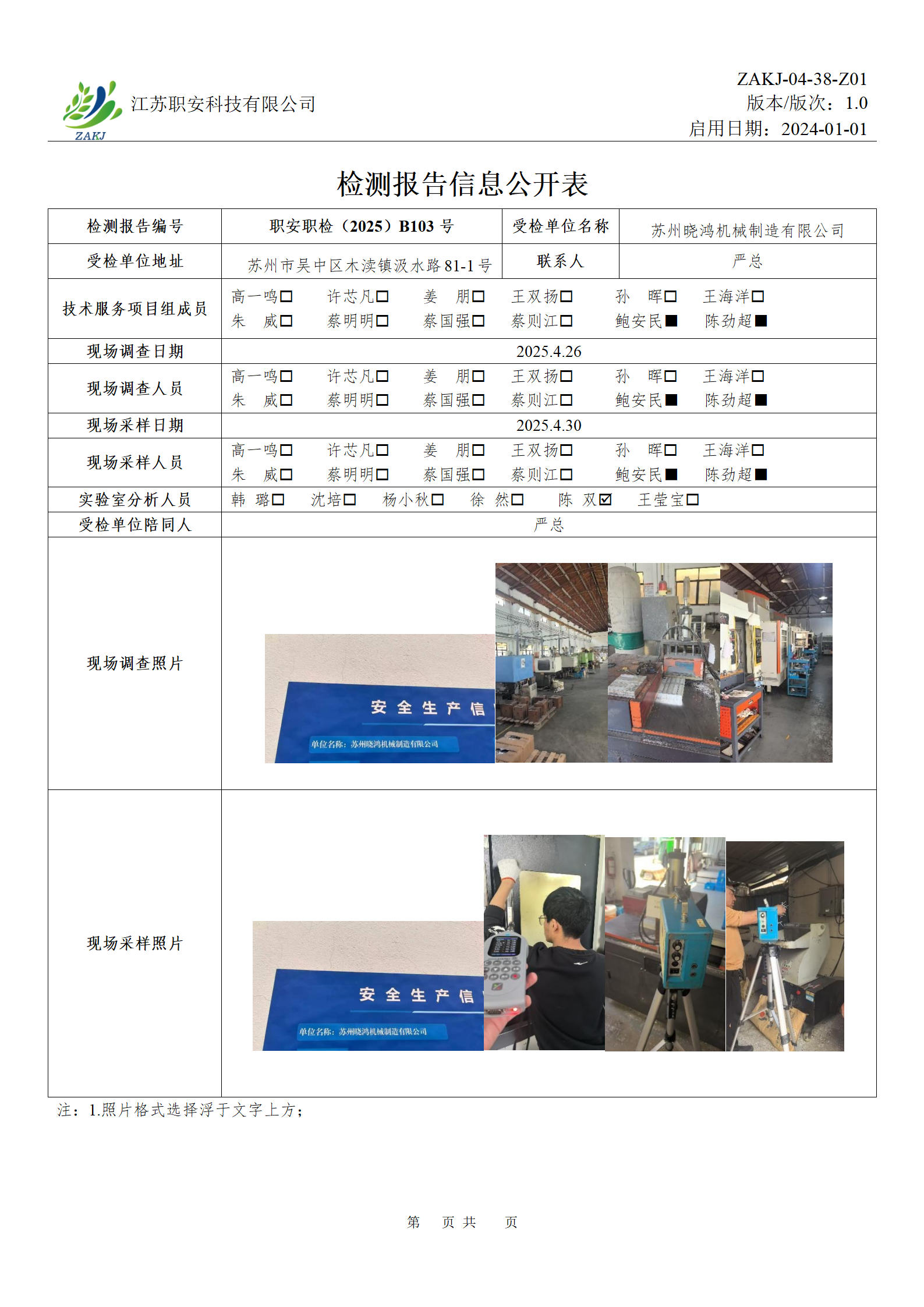 檢測報告公示