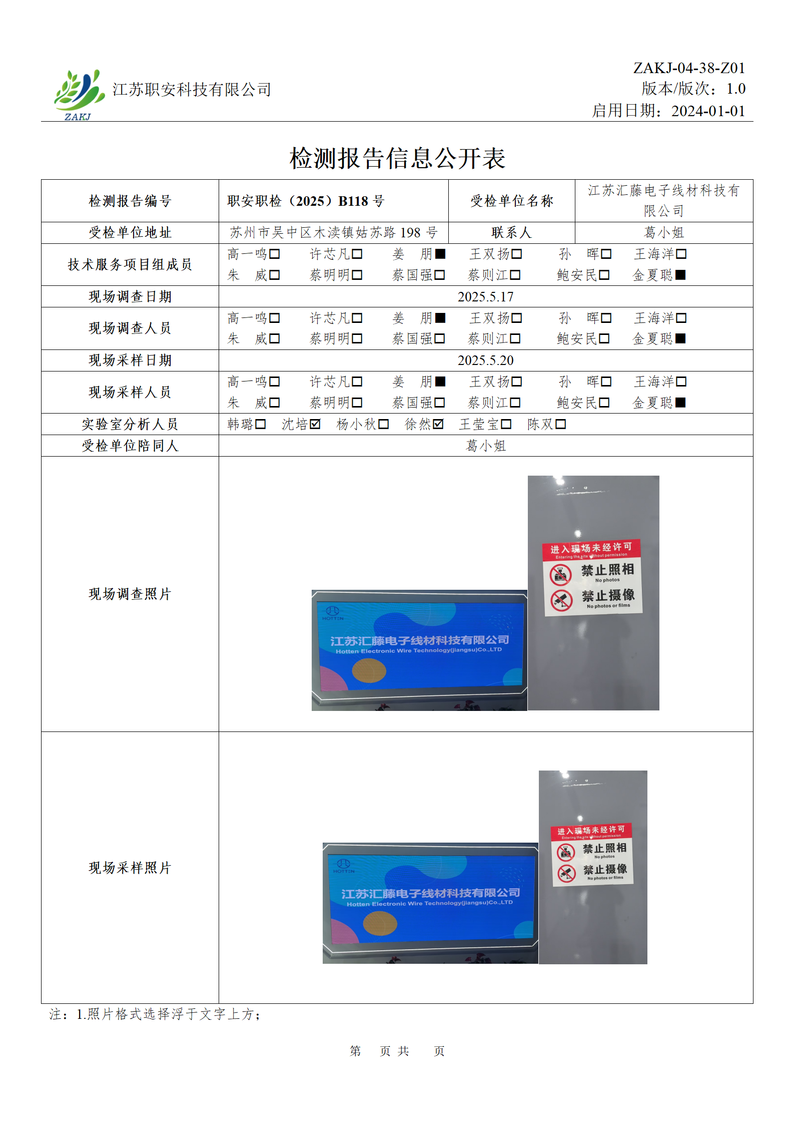 檢測報告公示