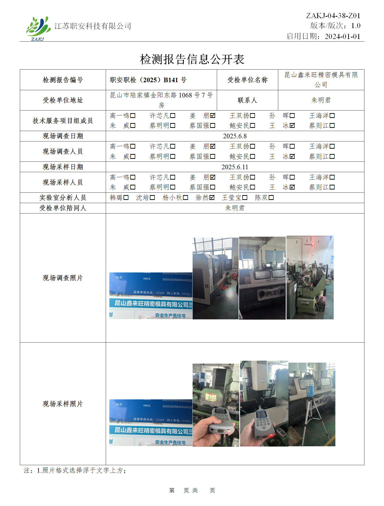檢測報告公示