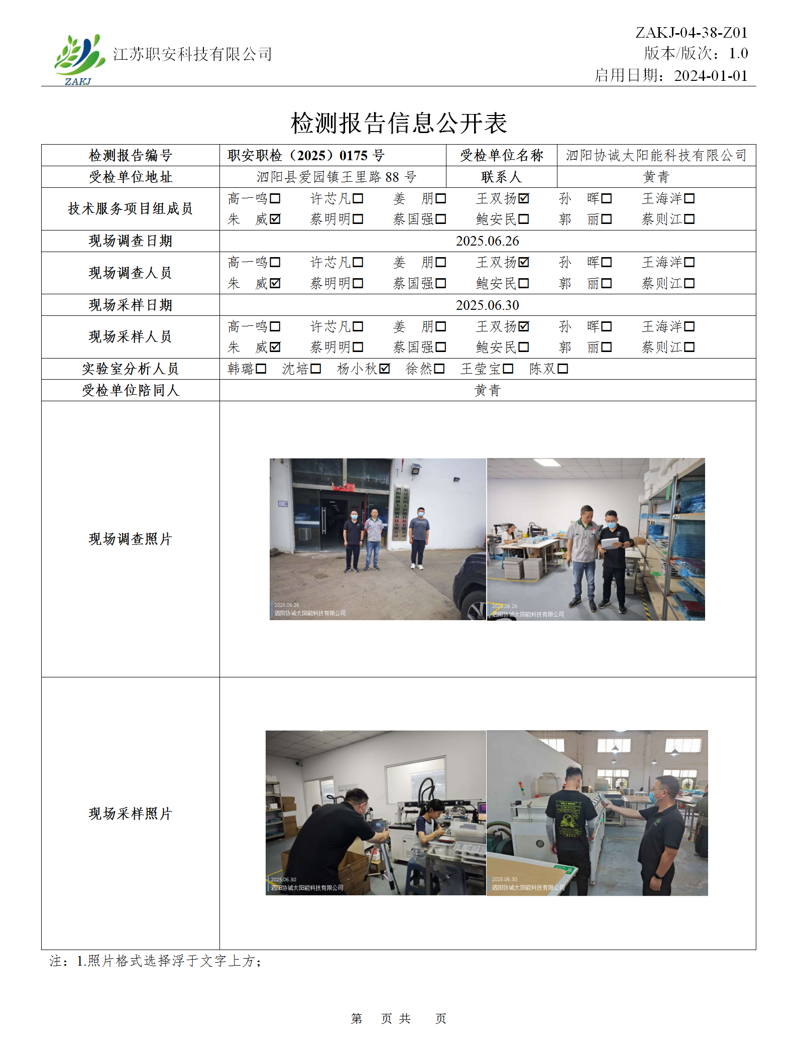 檢測報告公示