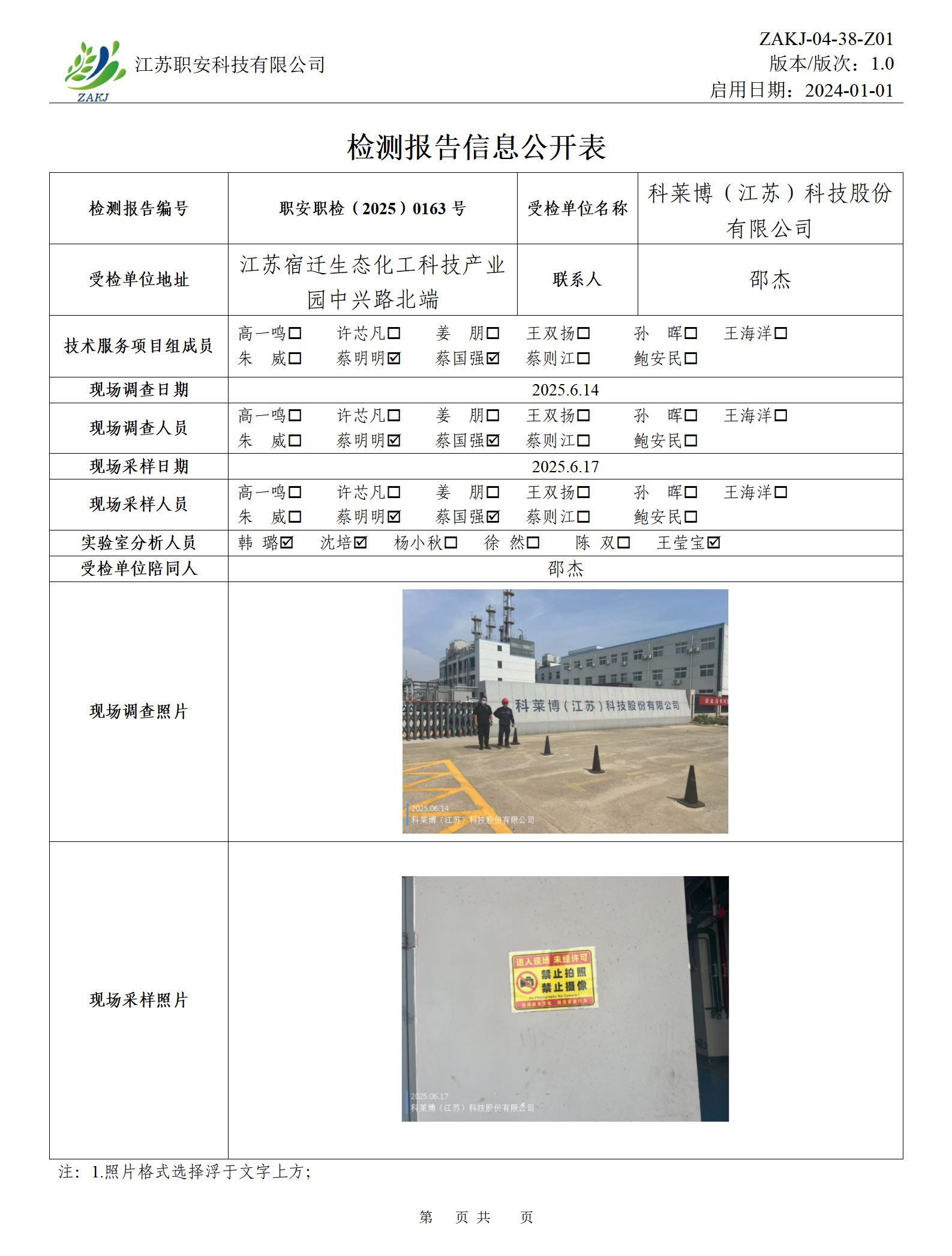 檢測報告公示