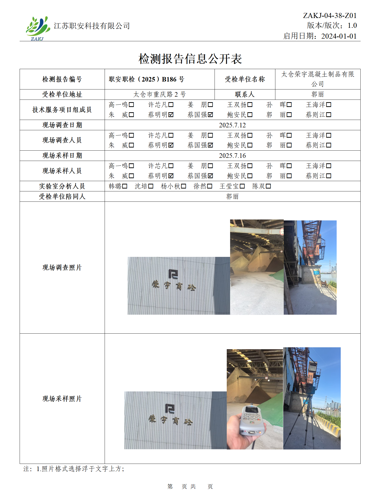 檢測報告公示