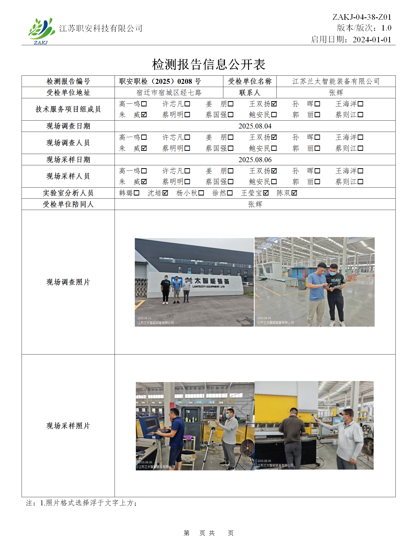 檢測報告公示