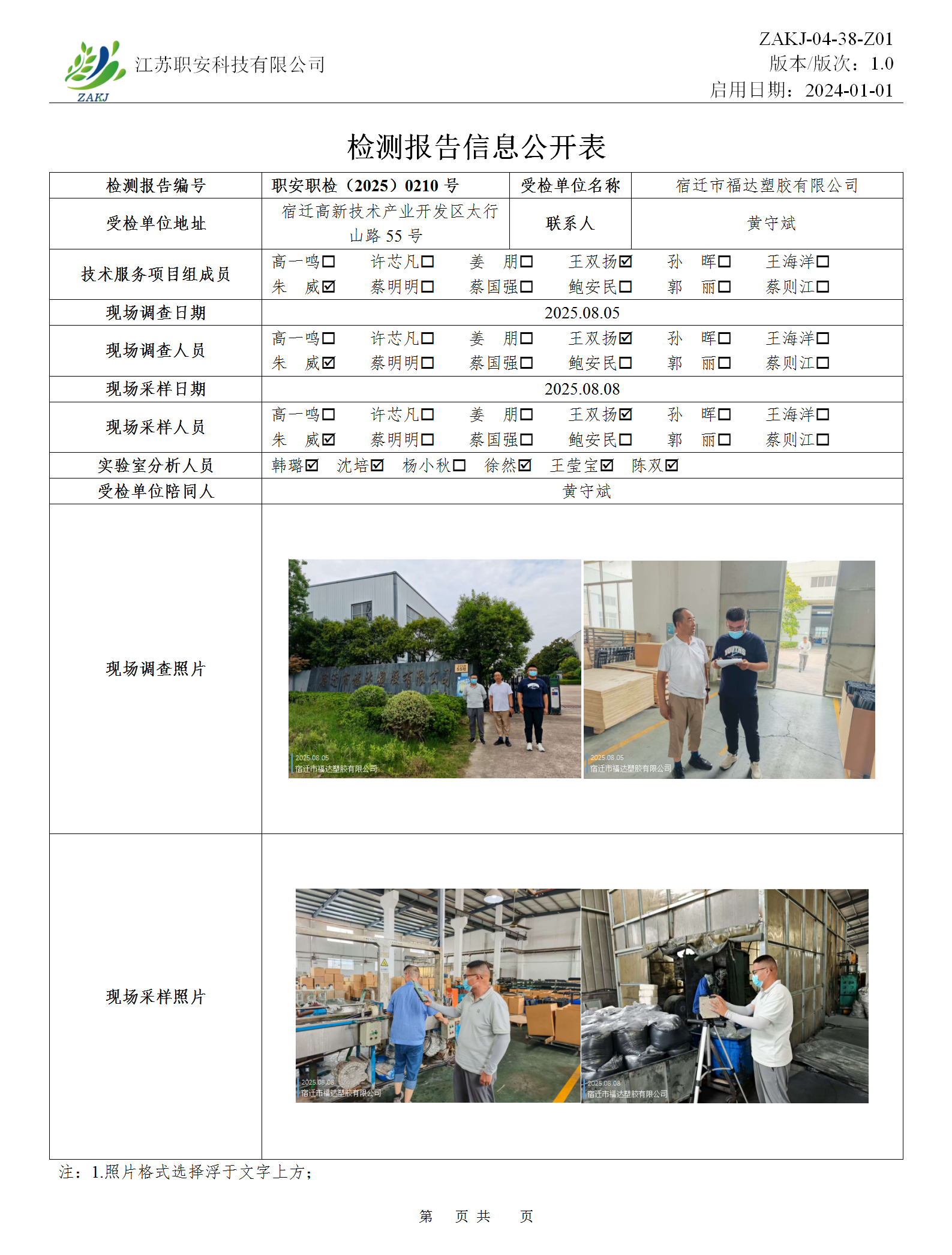 檢測報告公示
