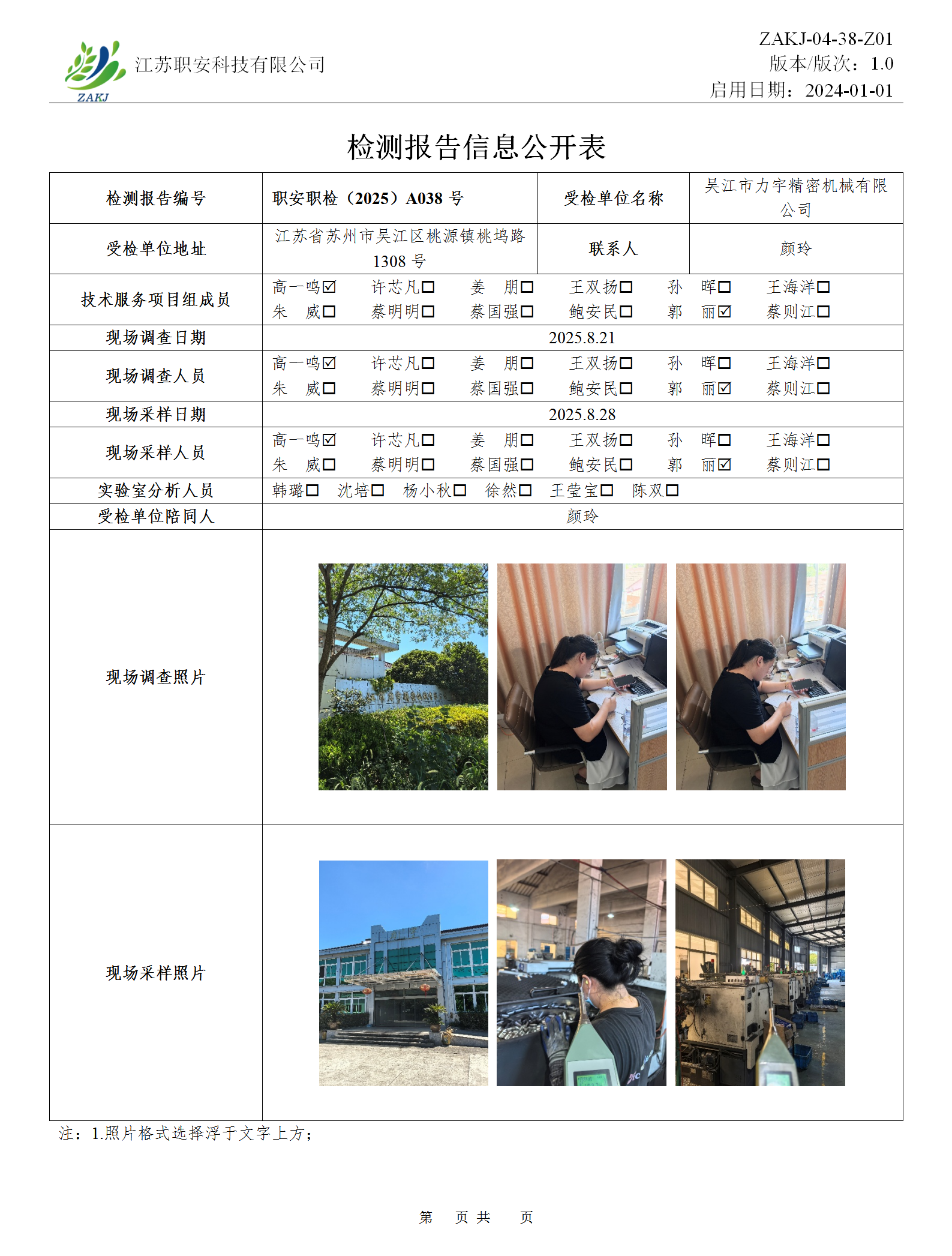 檢測報告公示