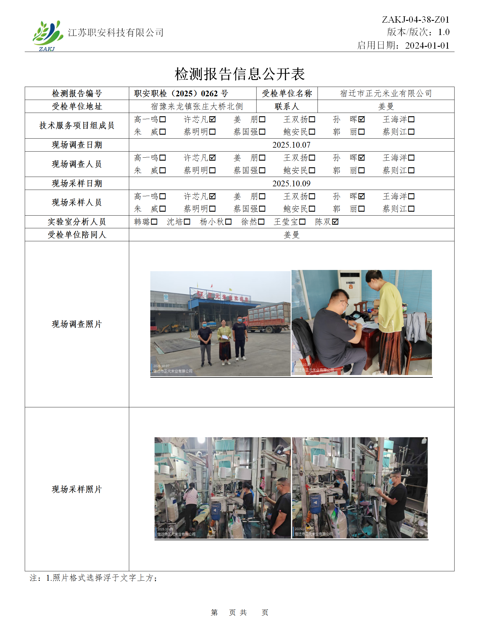 檢測報告公示
