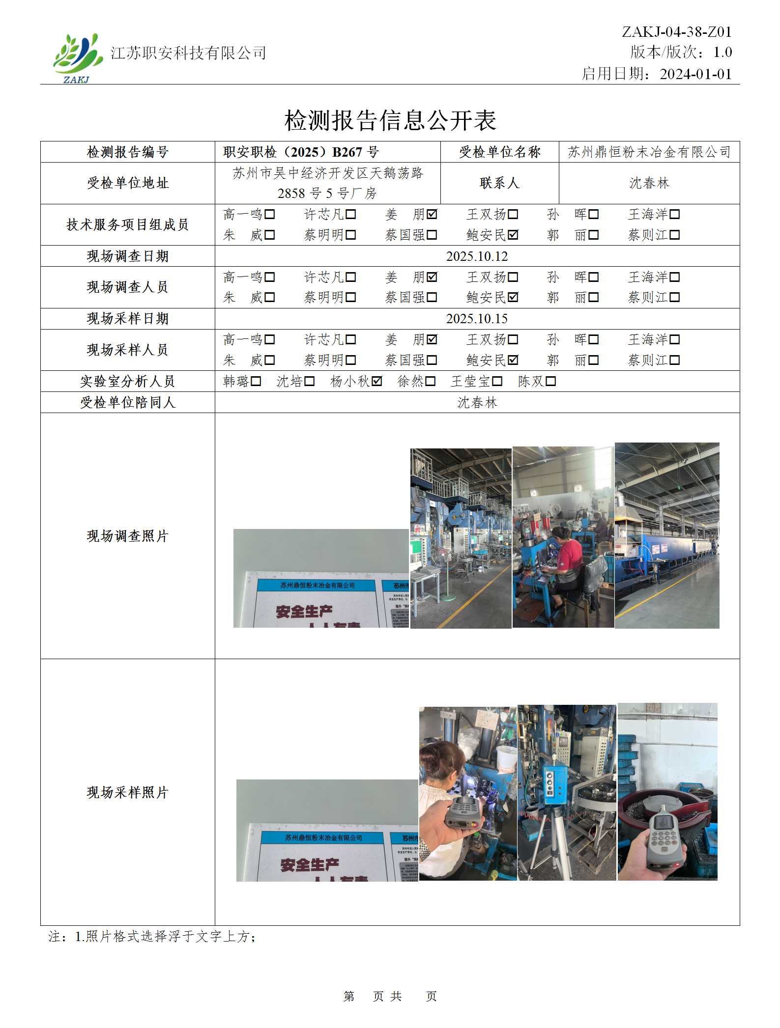 檢測報告公示