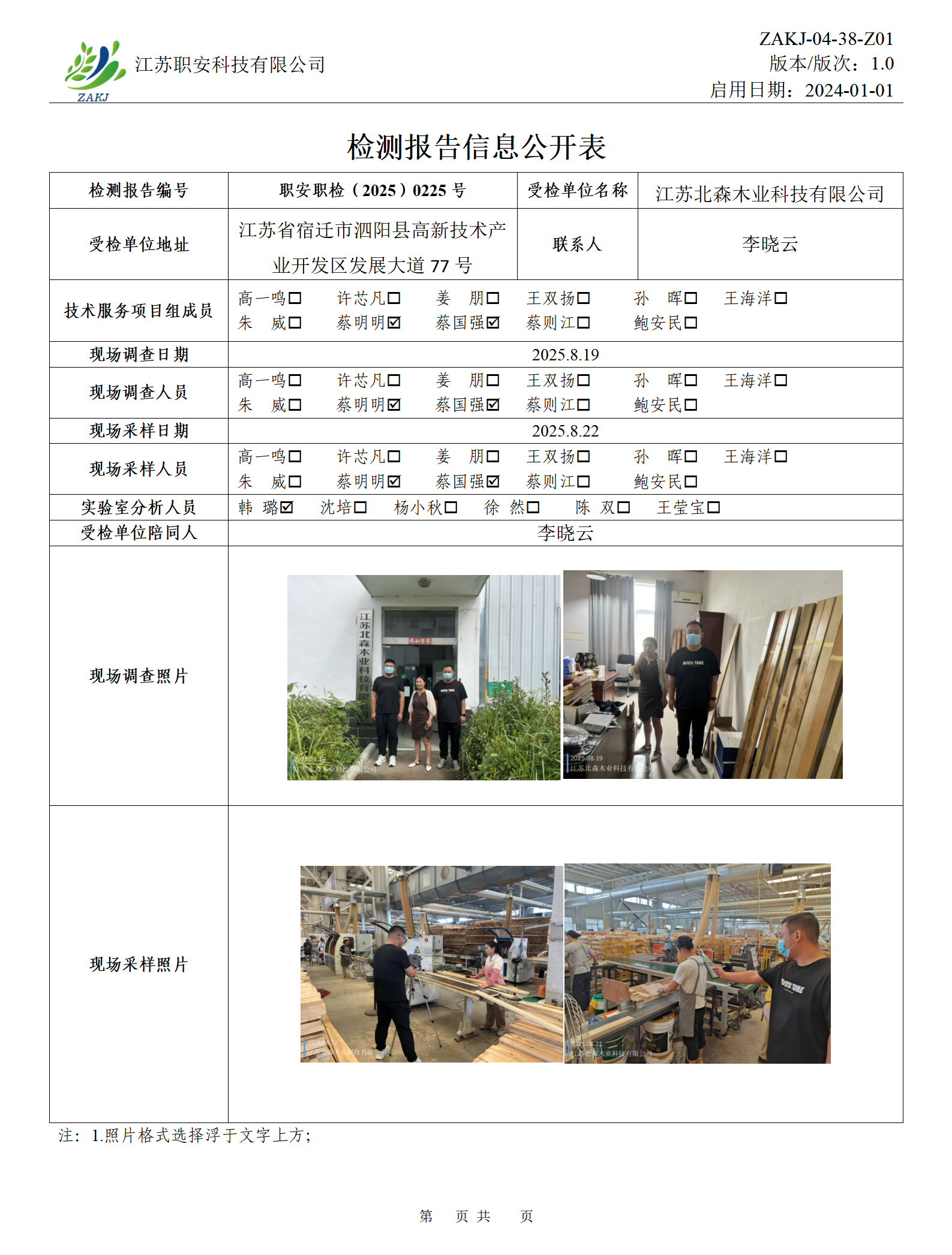 檢測報告公示