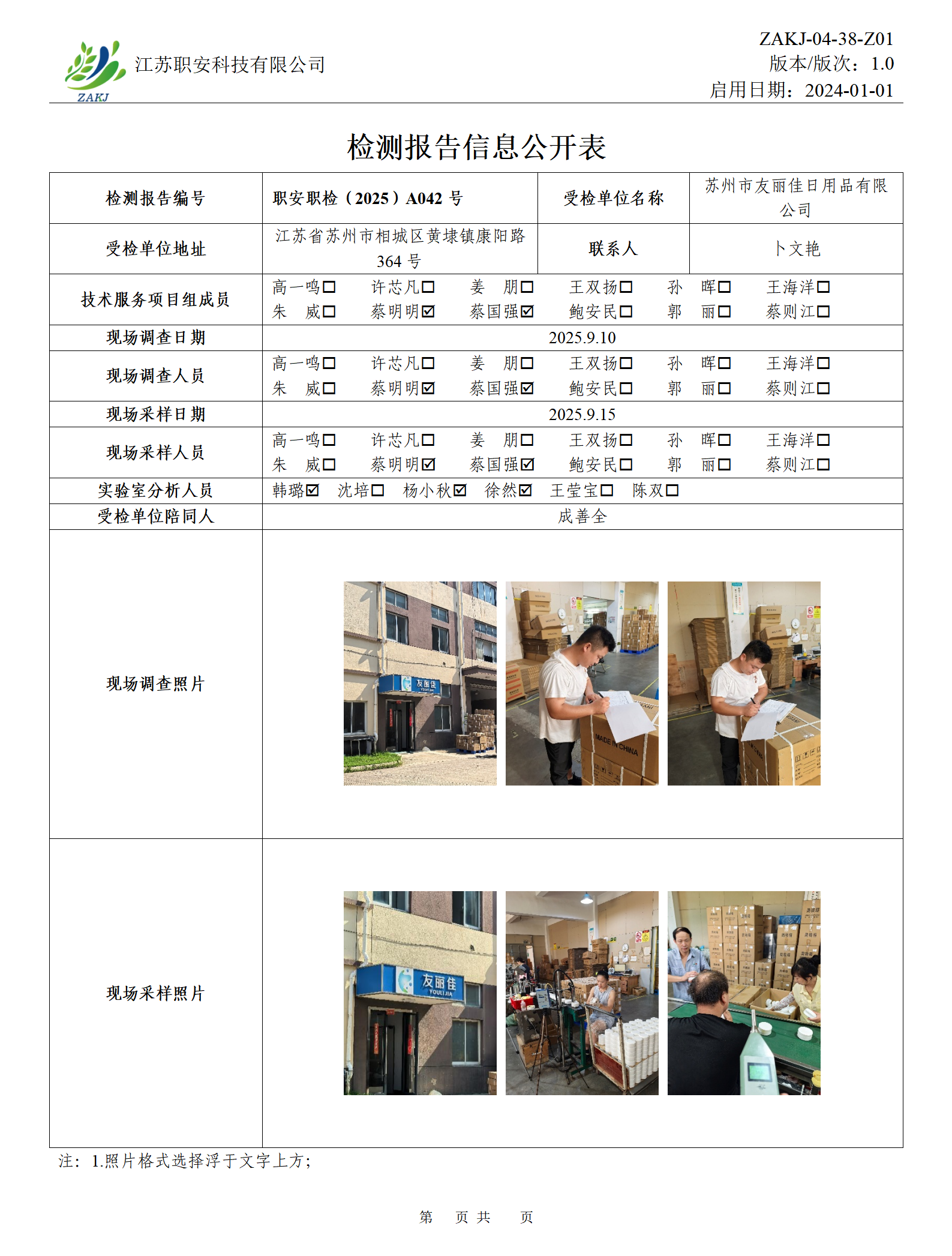 檢測報告公示