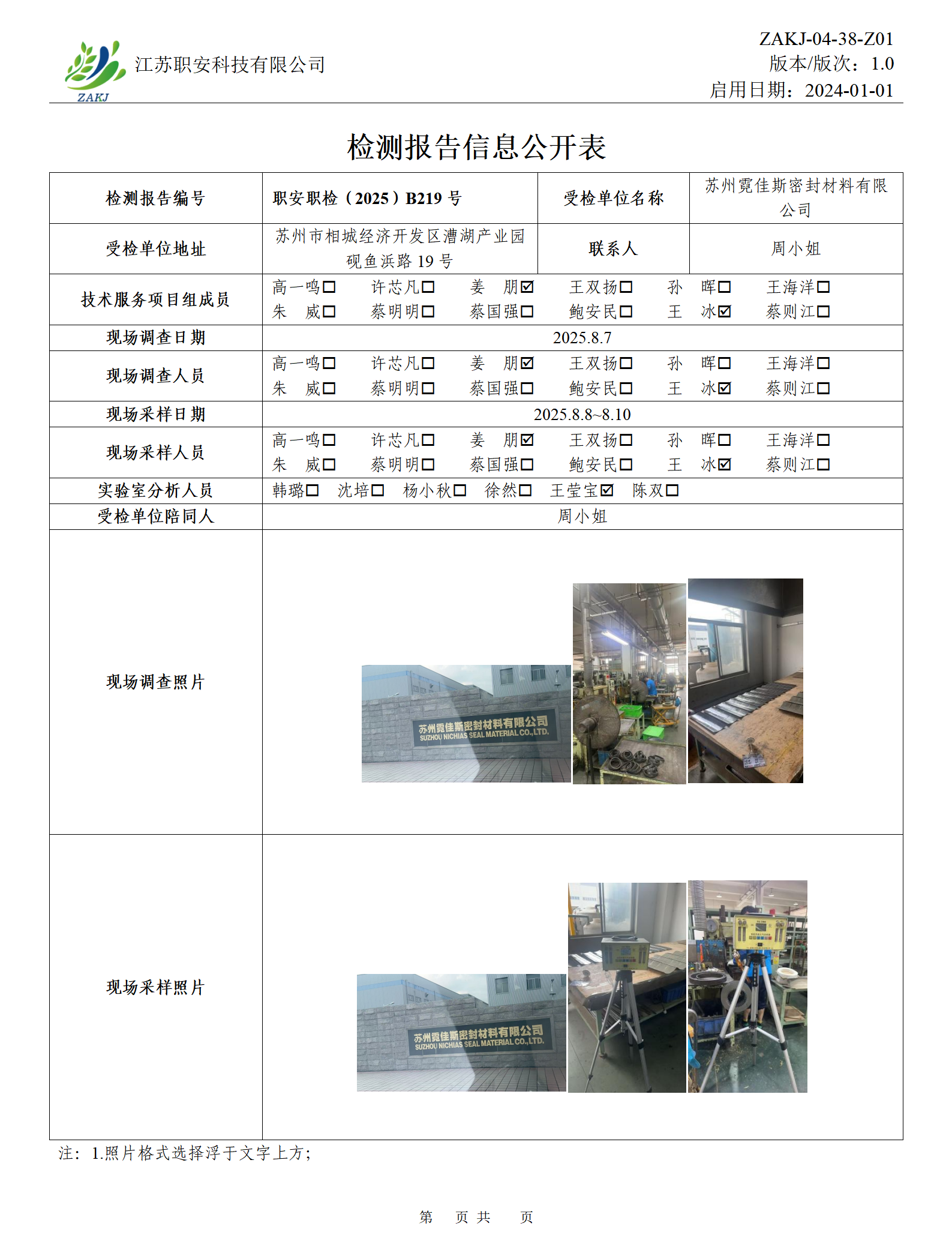 檢測報告公示