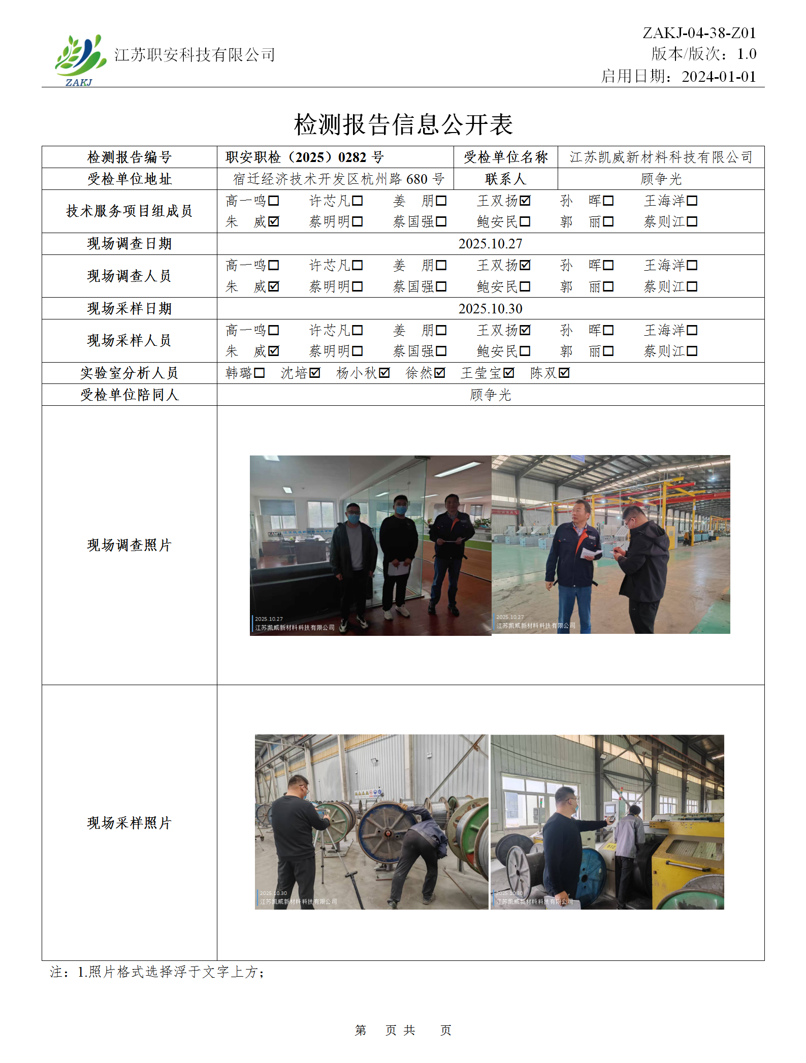 檢測報告公示