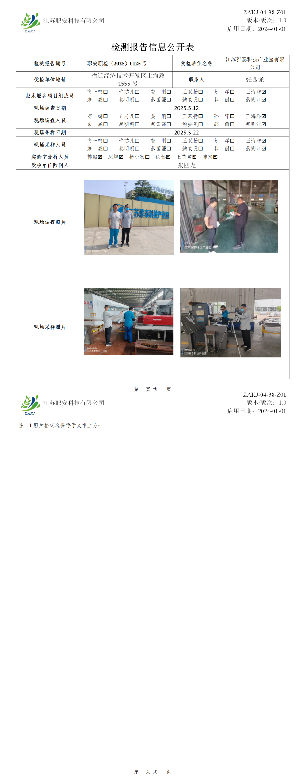 檢測報告公示