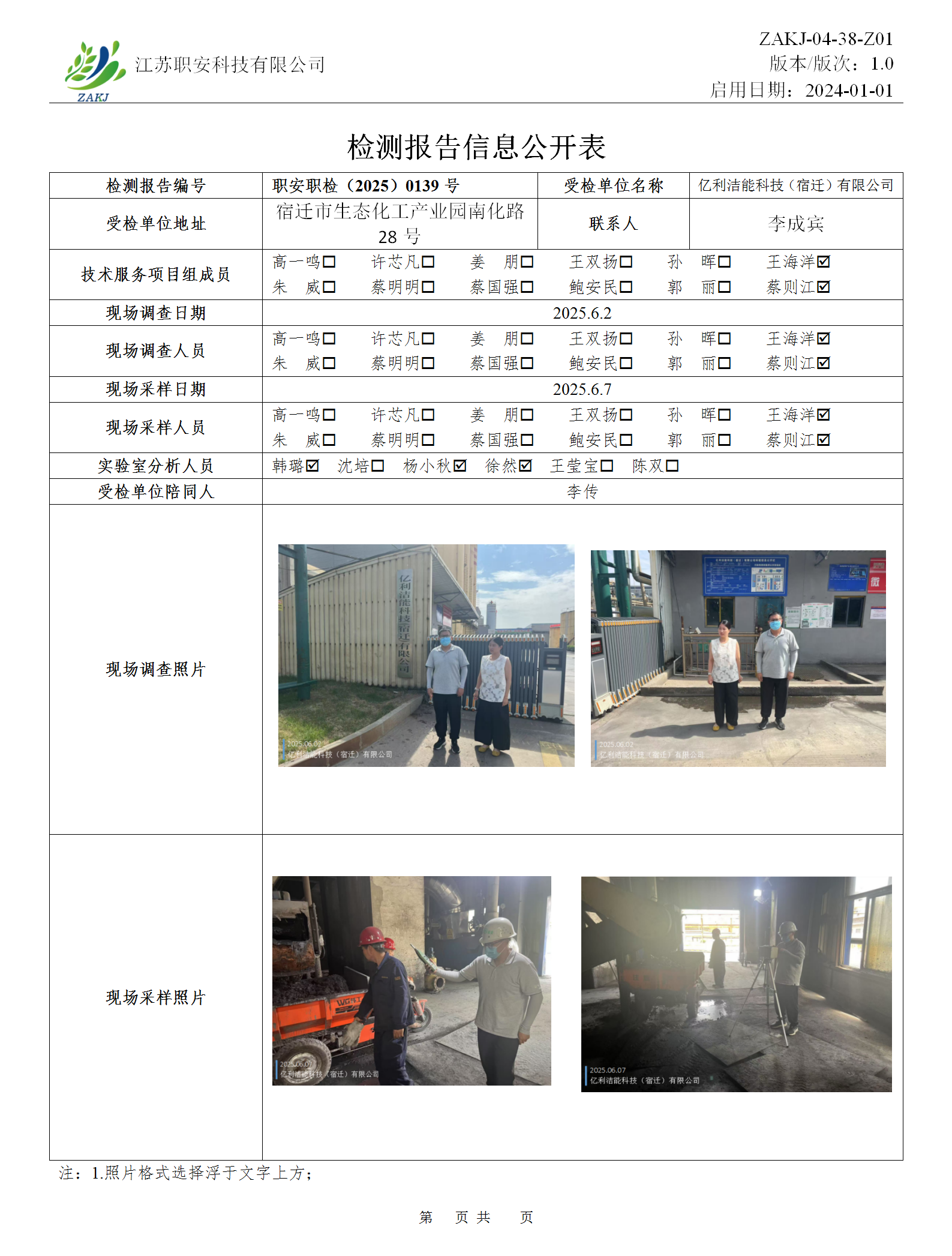 檢測報告公示