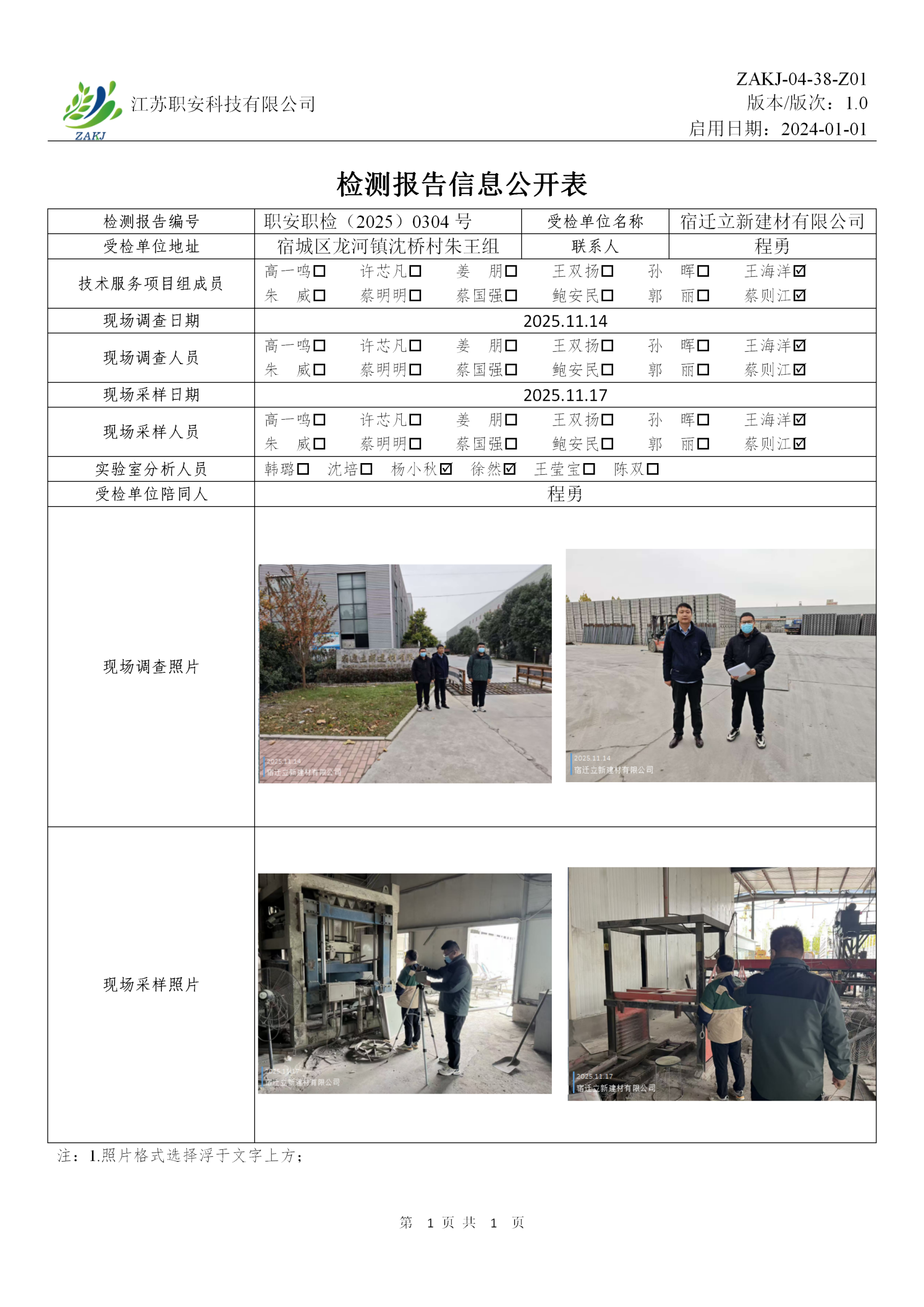 檢測報告公示