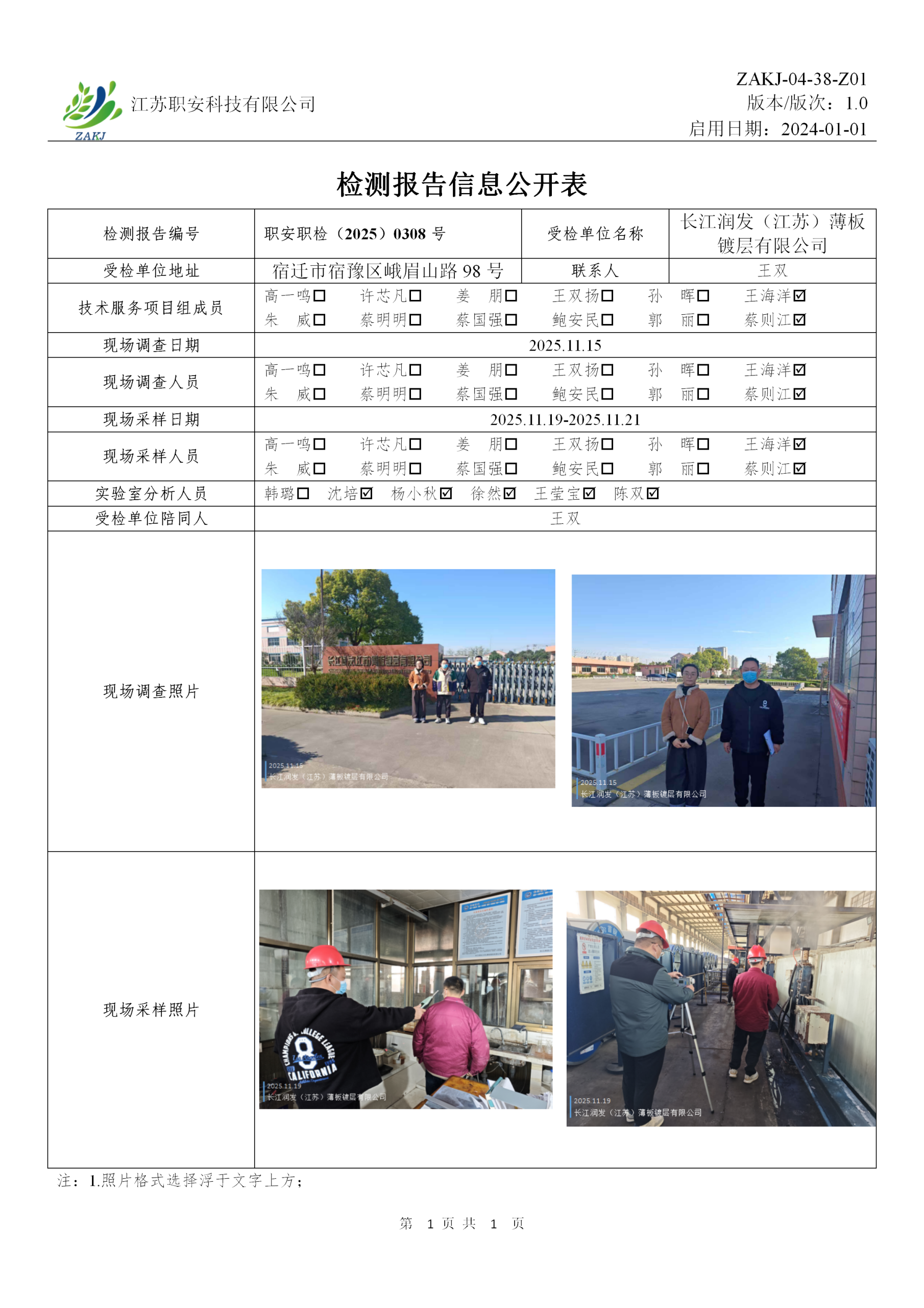 檢測報告公示