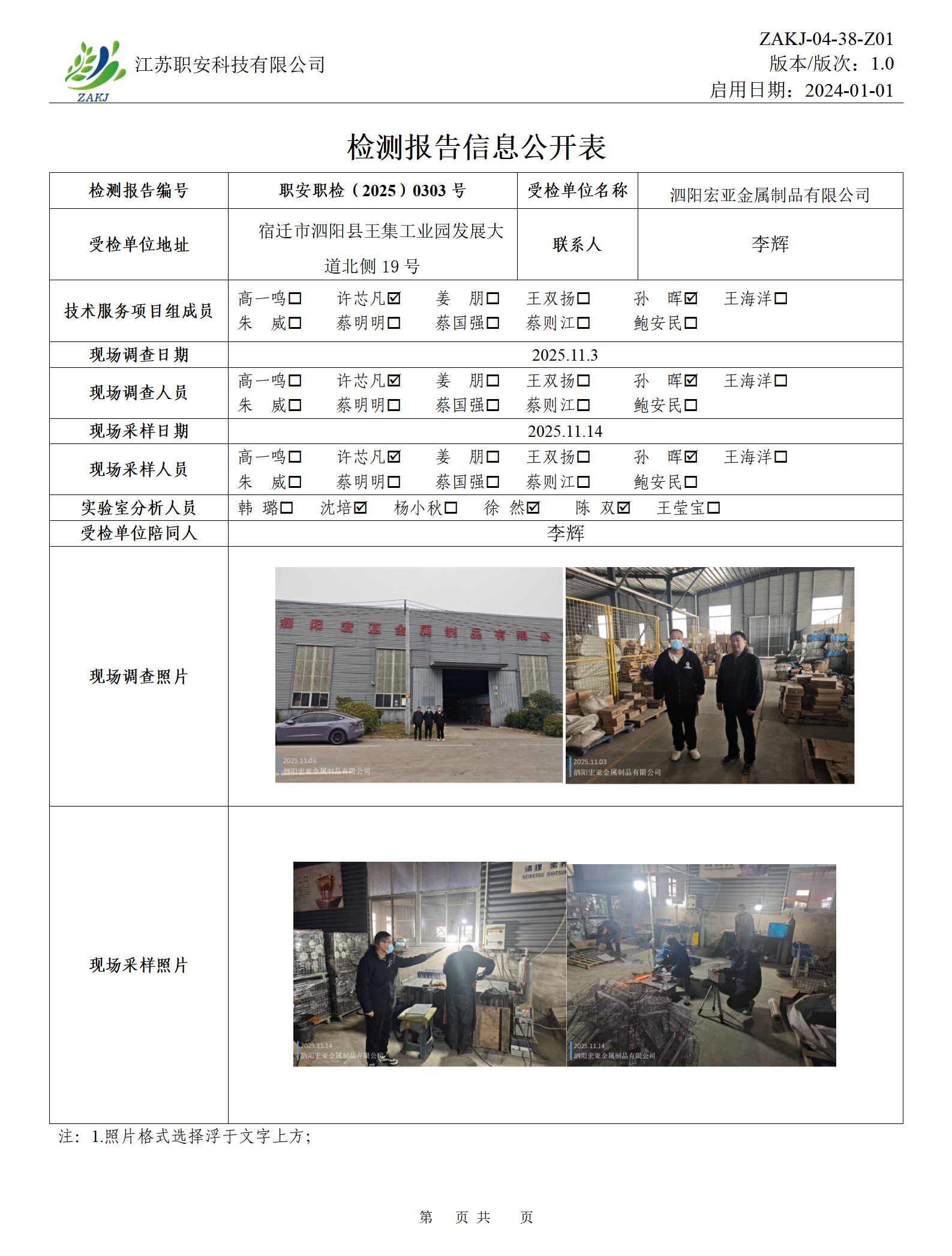 檢測報告公示