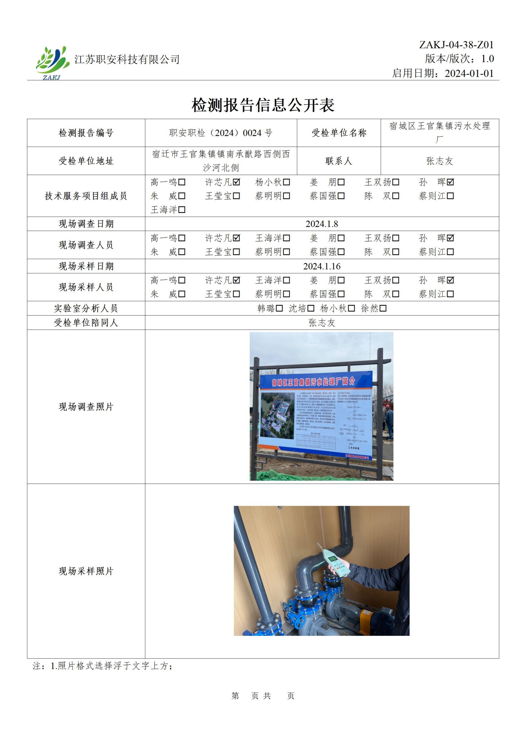 檢測報告公示