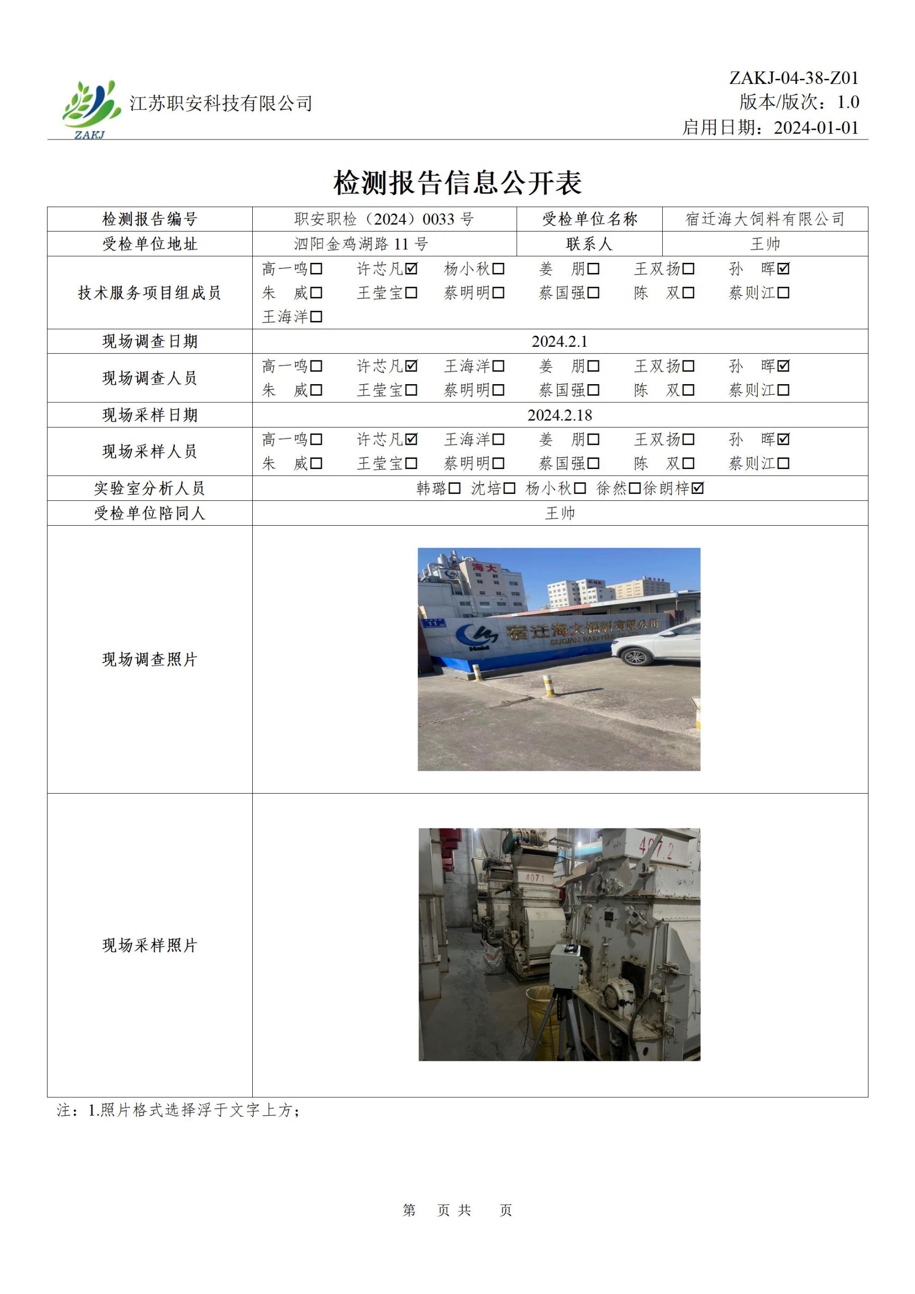 檢測報告公示