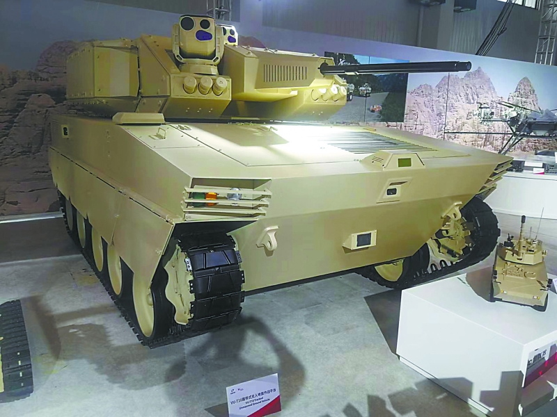 相比各種無人機和巡飛彈,珠海航展上的無人地面作戰車輛在作戰性能上也毫不遜色。除了VT-5U輕型坦克可以臨時客串“無人坦克”外,兵器工業集團的VU-T10履帶式無人地面作戰平臺也堪稱重型無人車輛。VU-T10主要針對城市環境作戰,選擇采用厚重的履帶式底盤,配備有30毫米口徑遙控武器站,未來還可以根據需要配備4枚“紅箭-12”反坦克導彈,加載7.62毫米機槍,其武器配備的豐富程度相比俄羅斯BMPT“終結者”火力支援車也不遜色,卻沒有了后者在巷戰中可能遭遇人員傷亡的風險。