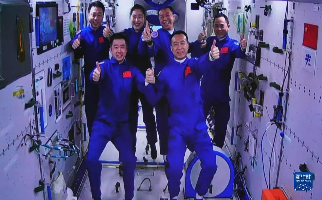 神舟十五號載人飛船入軌后,于11月30日5時42分成功對接于空間站天和核心艙前向端口。11月30日7時33分,兩個航天員乘組“勝利會師”,并一起在中國人自己的“太空家園”里留下了一張足以載入史冊的太空合影。