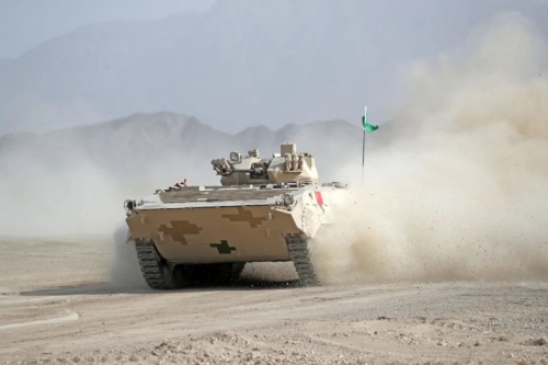 8月14日,“國際軍事比賽-2022”中國庫爾勒賽區進入首個比賽日,以賽道難度大和射擊要求高而聞名的“蘇沃洛夫突擊”項目率先展開競逐,由兵器工業集團研制生產的86A步戰車助力中國隊取得單車賽首輪第一名。